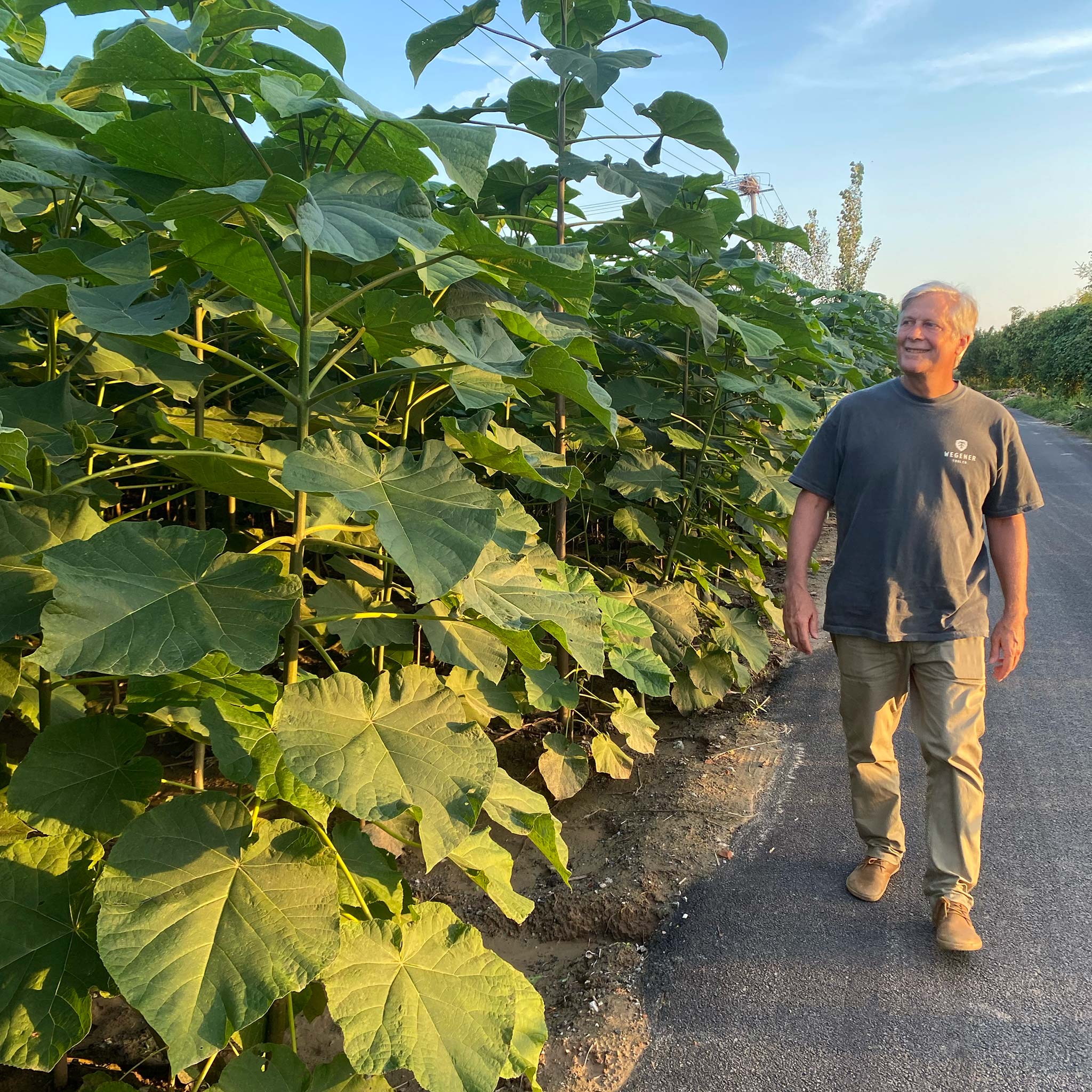 The Empress Tree (paulownia tomentosa) is a fast growing, deciduous tree, native to western China and revered by Chinese people for the role paulownia plantations played in re-establishing degraded farming lands from the 1960s to the present day. Tom Wegener 2025