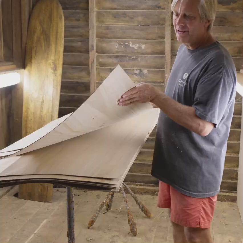 They’re used for building surfboards, bellyboards, handplanes, and other wooden watercraft. The thin 2mm sheets are especially good for shaping curved boards using moulds or vacuum methods.