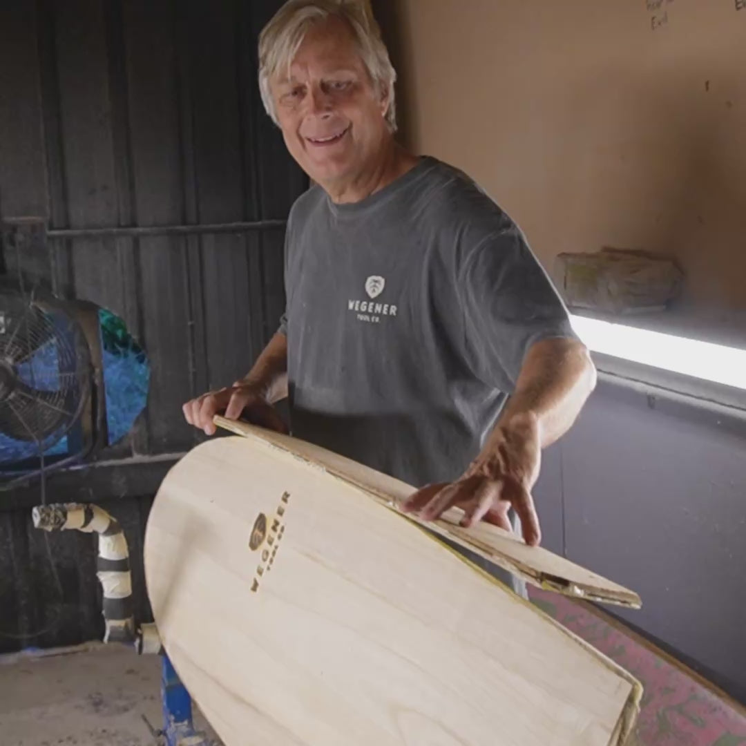 Tom takes a simple approach to making and shaping surfboards, minimising where possible, repurposing wood scraps, and making his own tools. Please note that our handmade tools are crafted by hand, not mass-produced, and as a result they may have minor variations or imperfections that add to their unique character, without affecting their purpose.