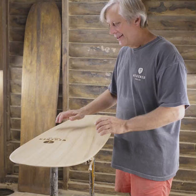 The Original Surfie is made from paulownia wood and coated in a water-based varnish. This little beauty is loved by all. The Surfie is a great place to start your wood surfboard journey. Discover the joy of prone surfing.